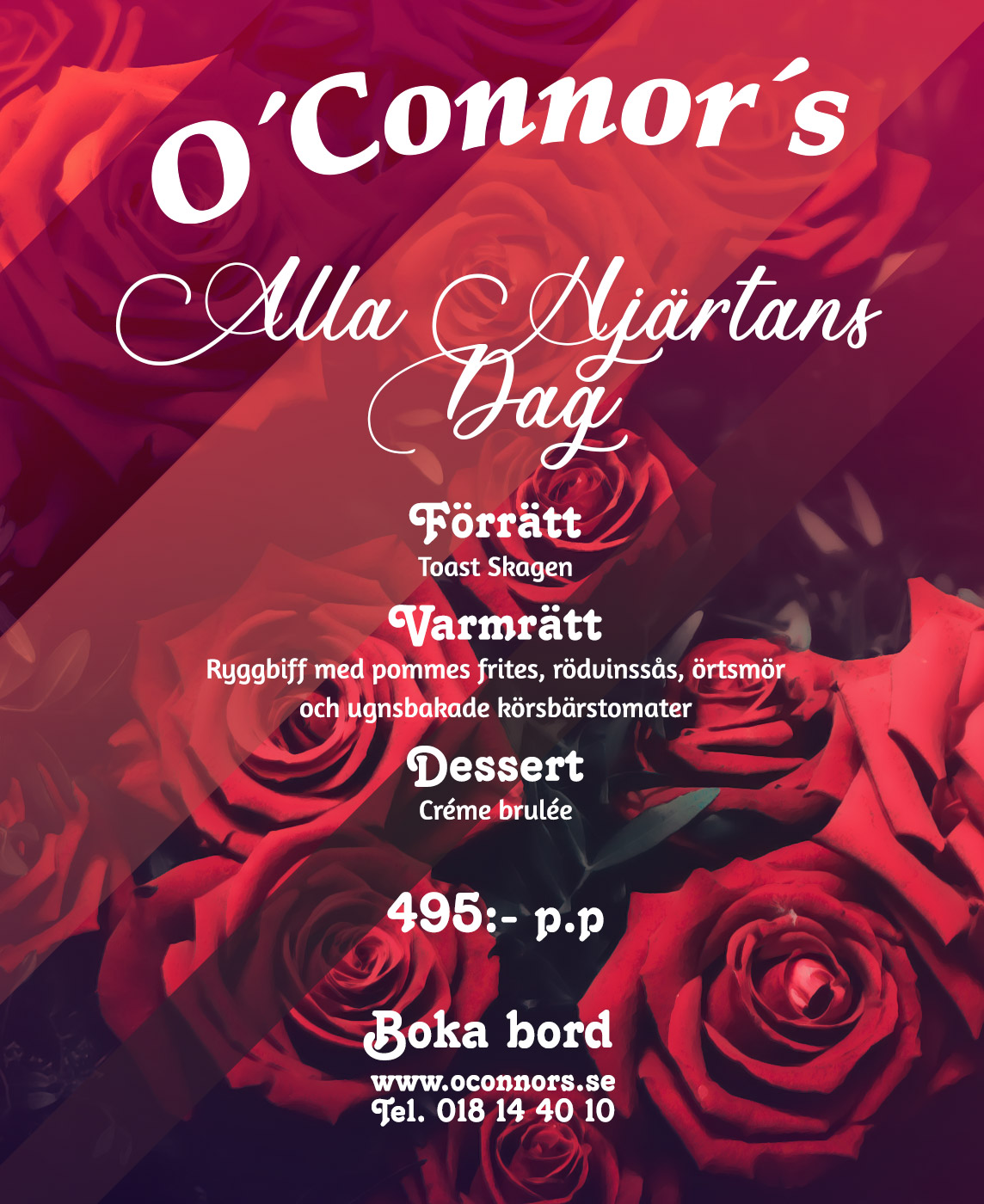 Belägen i centrala Uppsala, ligger restaurang O’Connor’s Irländska pub som erbjuder den största samlingen av drycker och drinkar i stan tillsammans med utsökta maträtter och en mysig atmosfär.