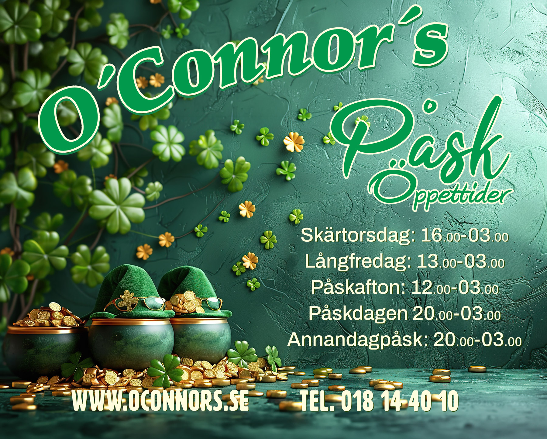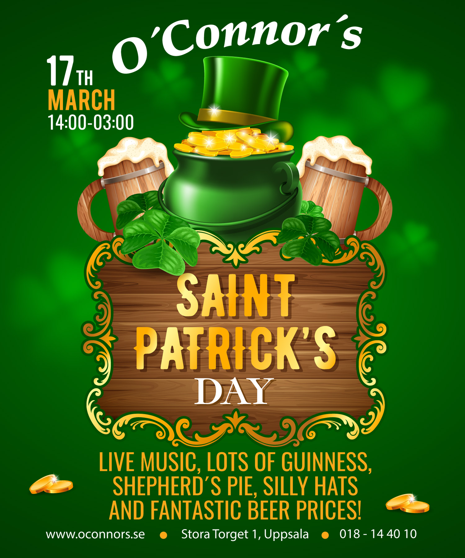 Belägen i centrala Uppsala, ligger restaurang O’Connor’s Irländska pub som erbjuder den största samlingen av drycker och drinkar i stan tillsammans med utsökta maträtter och en mysig atmosfär.